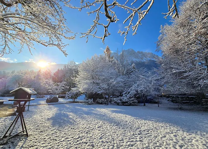 Das Hotel Nuss Grainau liegt in ungefähr 2 km Entfernung von der Eibsee-Seilbahn und bietet einen Geldautomaten und einen Verkaufsautomaten. Das Hotel bietet seinen Gästen 15 Zimmer und zahlreiche Annehmlichkeiten, darunter einen Friseursalon und ein Restaurant.